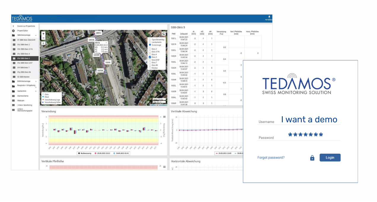 - Übersichtskarten mit Messpunkten – inklusive Layersteuerung und Systemstatus