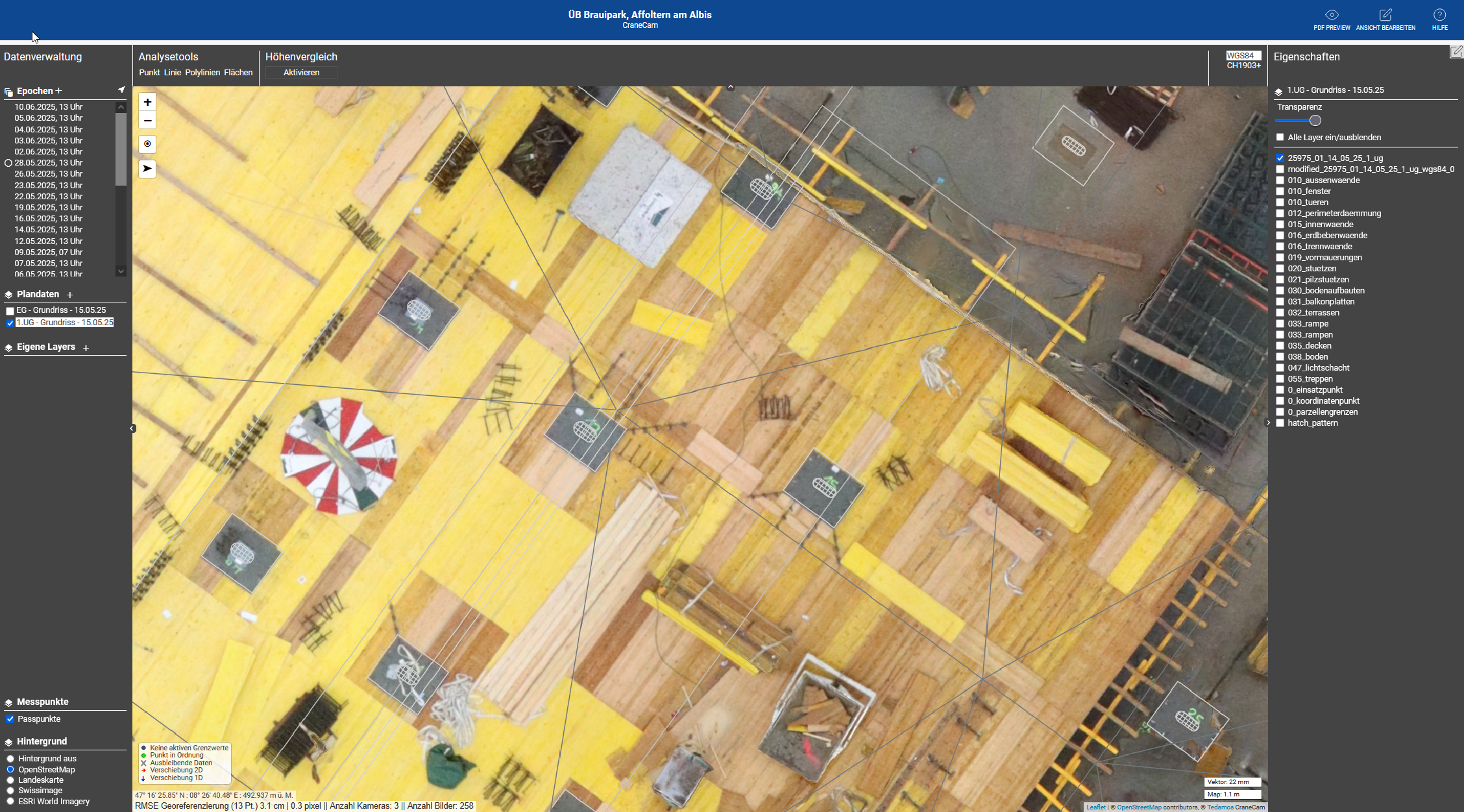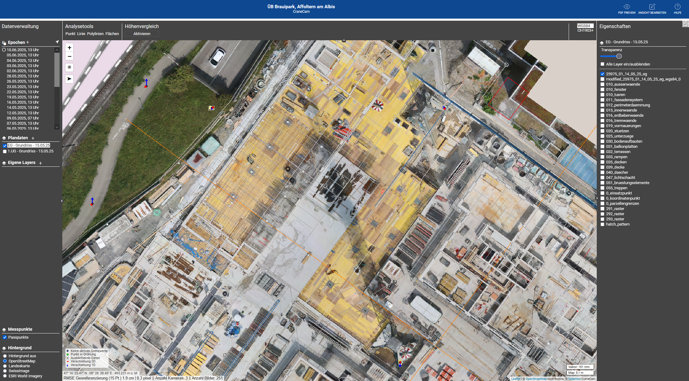 - Tägliche Baustellendokumentation durch drei CraneCams