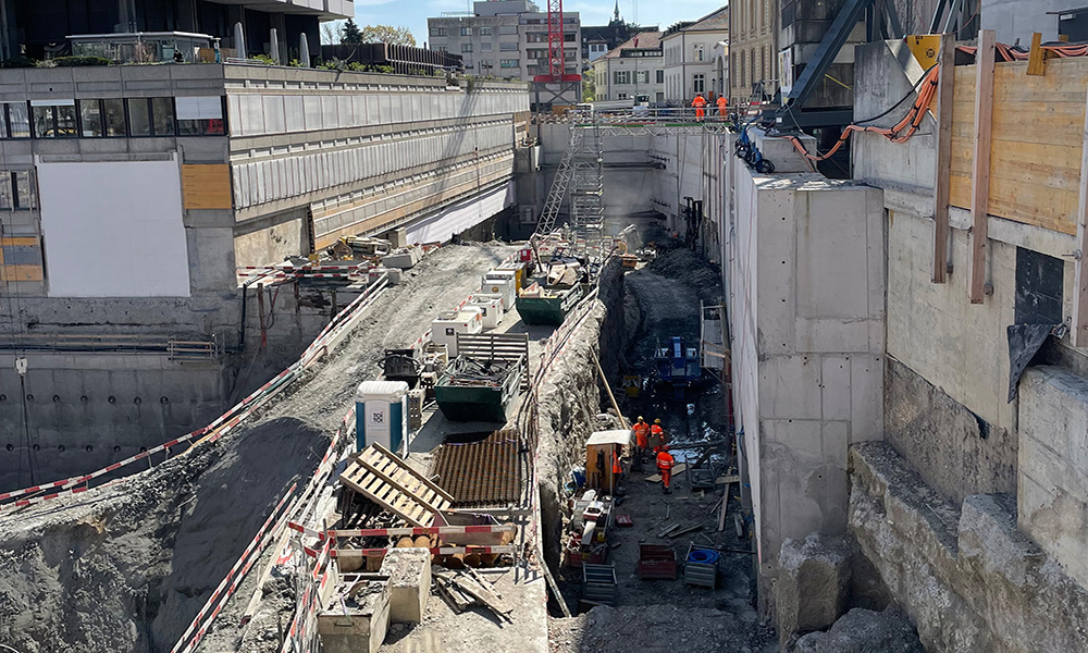 Deformationsmessungen an Baugruben, Hilfsbrücken, Gebäuden und Gleisanlagen