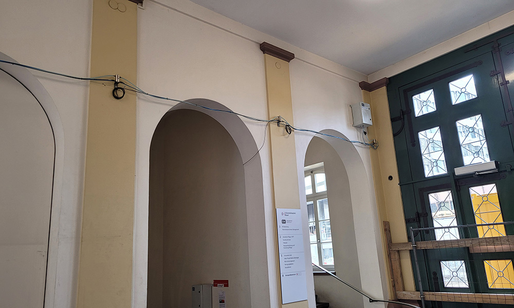 - Automatische Setzungsmessungen mit Schlauchwaagensystemen in den umliegenden Bestandsgebäuden mit einer Gesamtlänge von mehreren hundert Metern