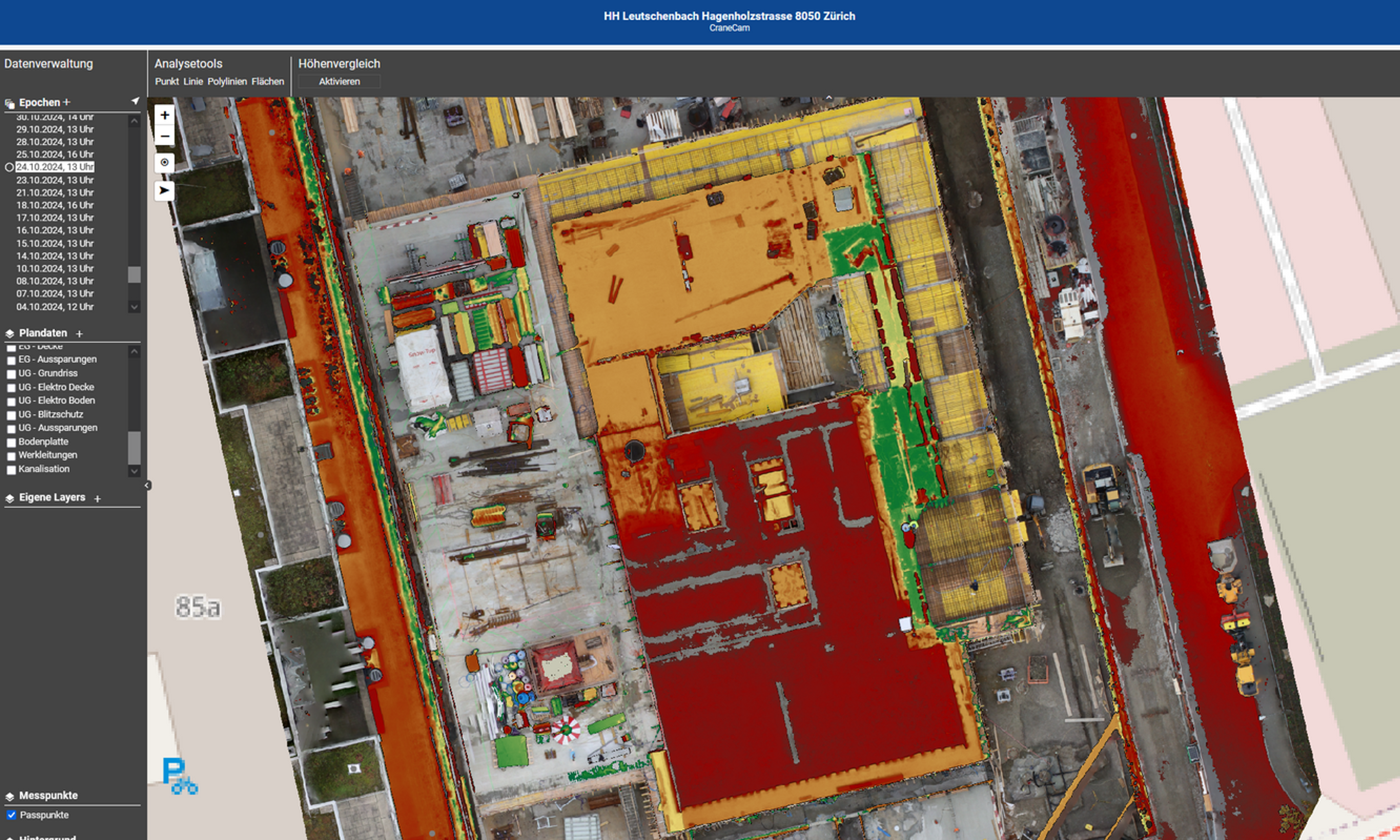 - Manuelle 3D-Überwachungsmessungen der Baugrube und Umgebung