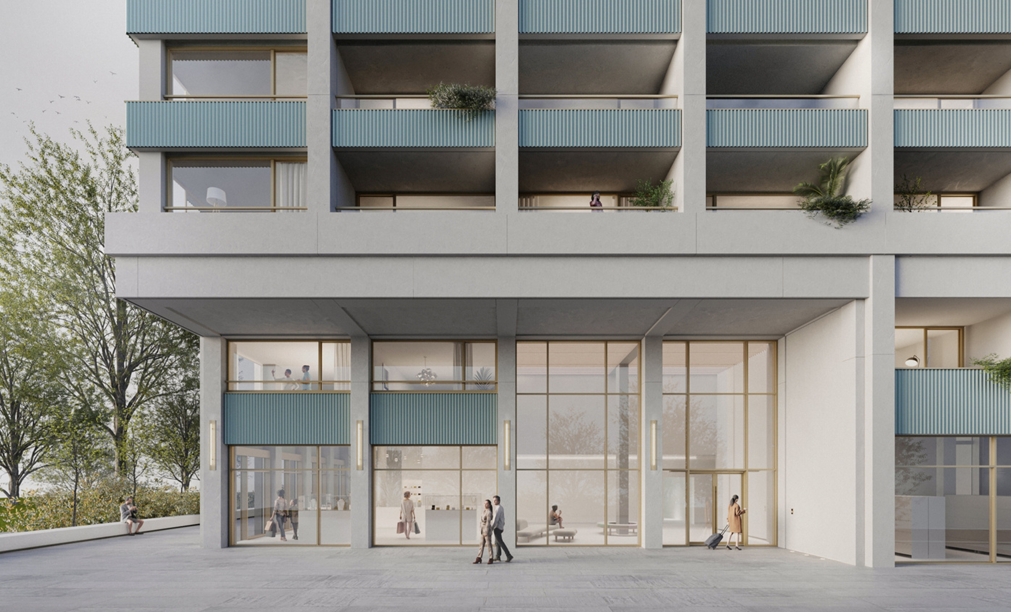 Eingebettet in eine grosszügige Parkanlage bietet das Projekt neben modernem Wohnraum auch Flächen im Erdgeschoss für Gewerbe und gemeinschaftliche Nutzung. Dank einer Dachterrasse und Gemeinschaftsräumen wird das 6. Obergeschoss zu einem Ort der Begegnung. In den obersten vier Geschossen sind Maisonette-Wohnungen untergebracht, die in der Fassade den optischen Abschluss des Gebäudes bilden. Nachhaltige Energiekonzepte und eine hochwertige Architektur prägen das Bauvorhaben.