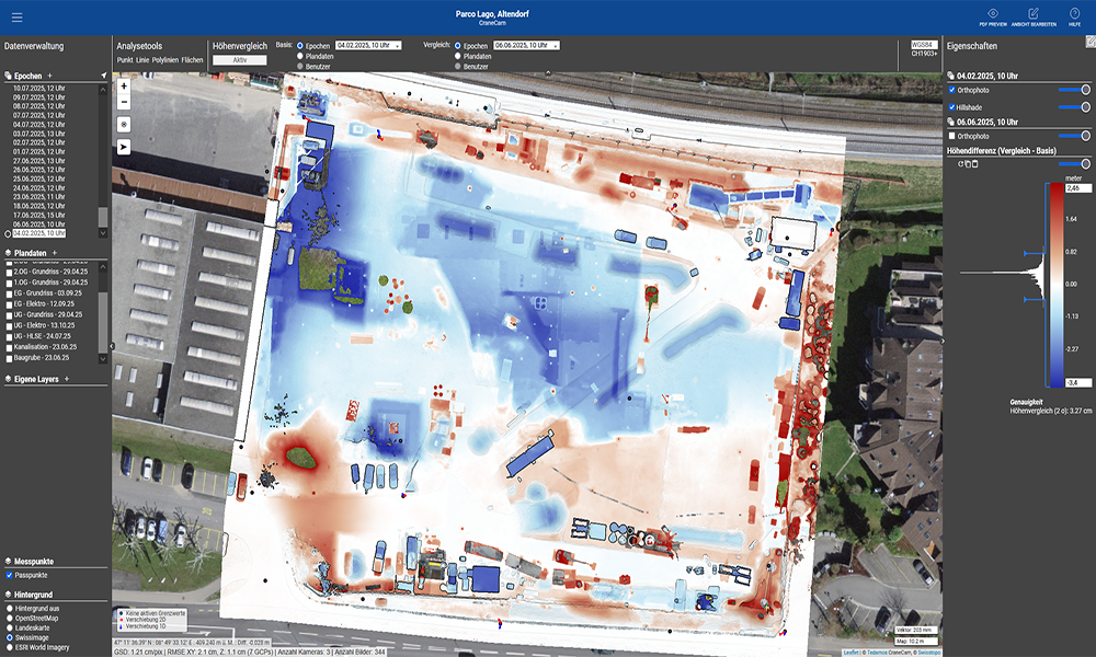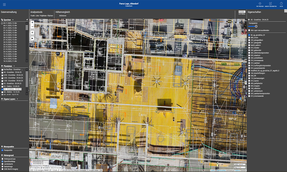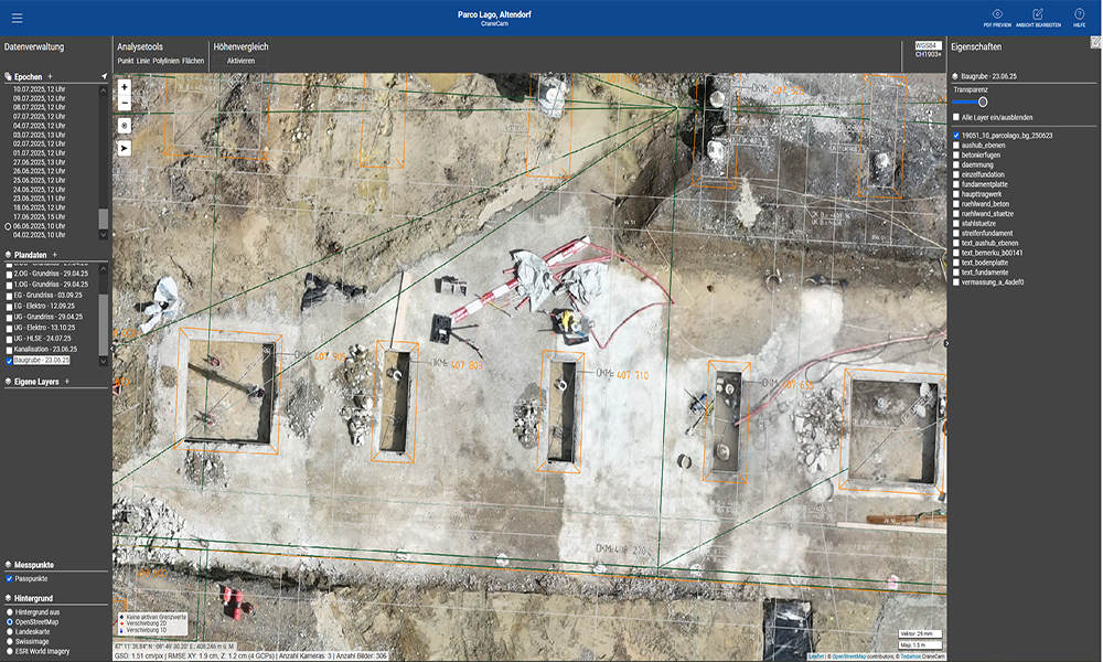 Das Projekt Parco Lago in Altendorf SZ ist ein modernes Neubauvorhaben direkt am Zürichsee. Es umfasst mehrere Wohn- und Geschäftsbauten mit hochwertiger Architektur, diversen Aussenanlagen und Seeblick. Ziel ist es, ein nachhaltiges, attraktives Wohnquartier zu schaffen, das sich harmonisch in die Umgebung einfügt. Wir begleiten die Bauarbeiten und sorgen für eine umfassende, automatisierte Dokumentation und Überwachung des Baufortschritts.