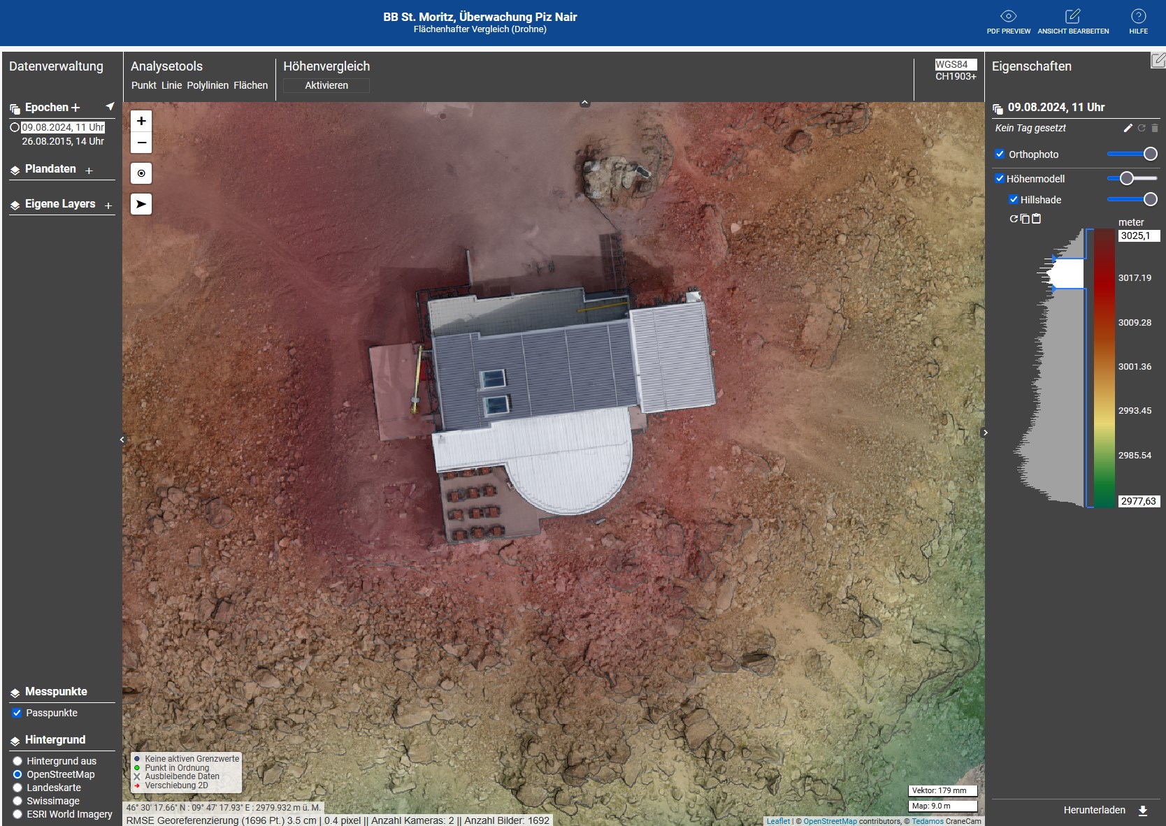 - Periodische flächenhafte Def.messungen der Umgebung der Bergstation mit Drohnen