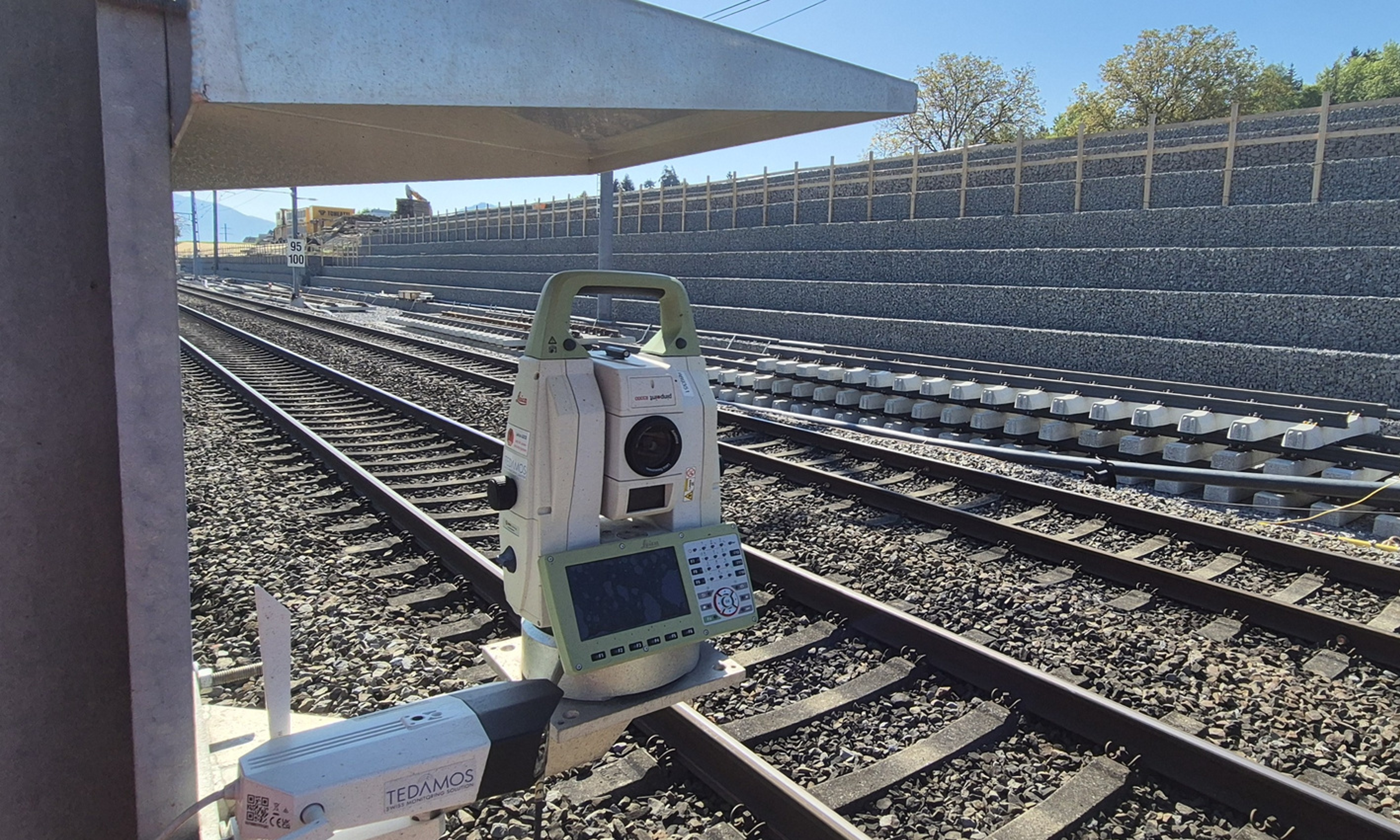 - auf rund 1,2 km Gleis mittels 500 Gleisprismen und sieben Tachymetern