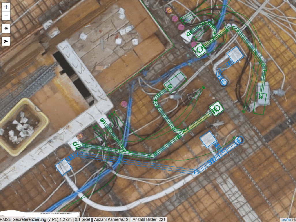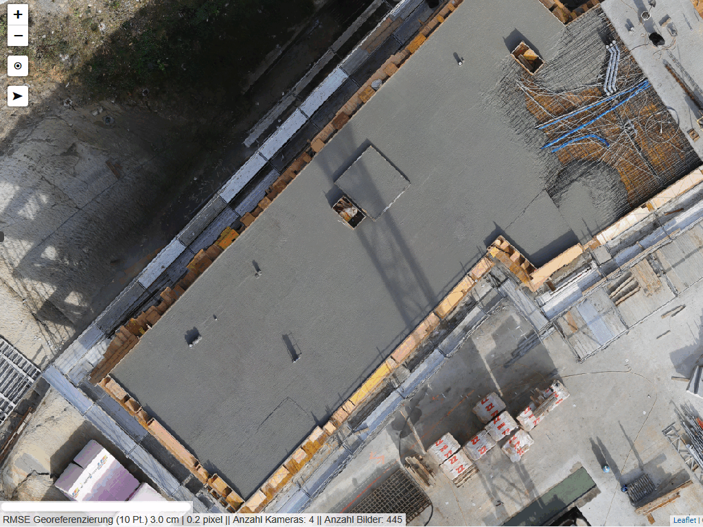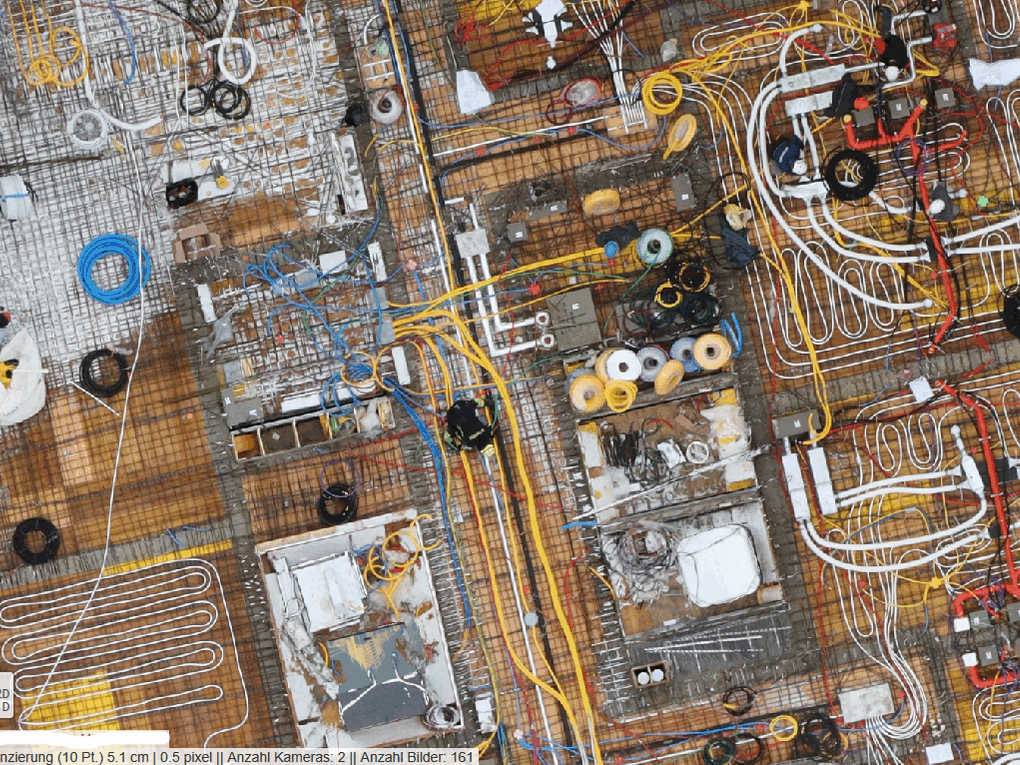 Dank hochauflösender Spiegelreflexkameras und codierten Passpunkten auf der Baustelle erreichen wir eine Genauigkeit von 1–2 cm.