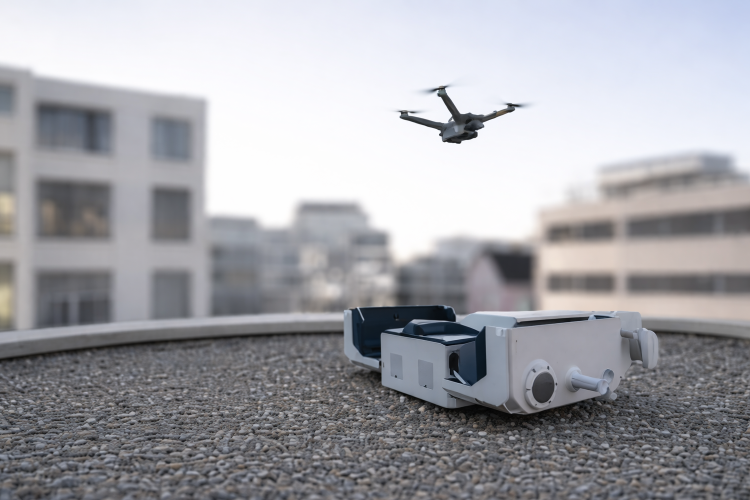 Vollautomatisierte Drohnensysteme übernehmen den gesamten Befliegungsprozess eigenständig – von Start über Flug bis zur Landung. Ganz ohne Personalaufwand entstehen regelmässig aktuelle Luftaufnahmen, die für die digitale Projektdokumentation zur Verfügung stehen.