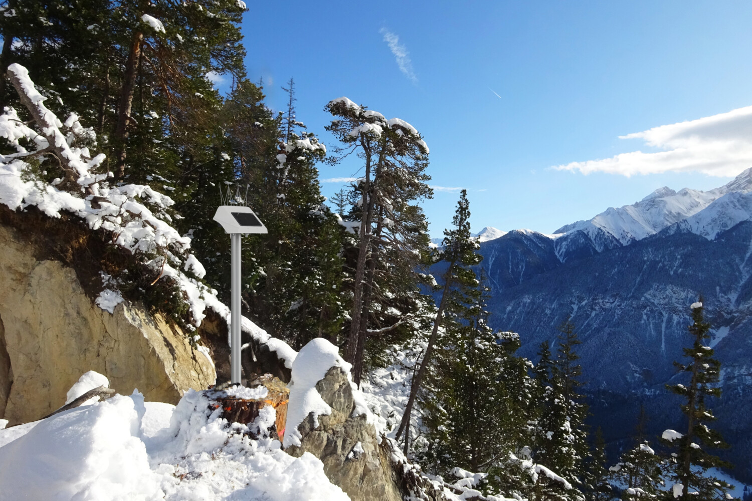 Übrigens: Die TEDAMOS GNSS wurden speziell für raue klimatische Bedingungen im Hochgebirge entwickelt. Durch die rundherum angeordneten Solarpanels bei der Pfeilervariante wird genügend Energie erzeugt, um sogar im Winter in Schattenhängen Messungen zu ermöglichen.