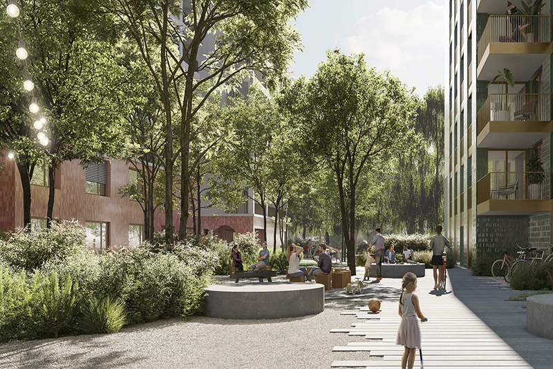 A vibrant new district with residential units and workplaces is being built on the historic site of the former brewery by 2027. The project by BAUWÄRCH Baumanagement GmbH comprises three buildings with a total of 113 rental apartments and 43 condominiums, as well as flexible commercial space for offices, medical practices, and retail outlets. The central themes of the project are sustainability and community.