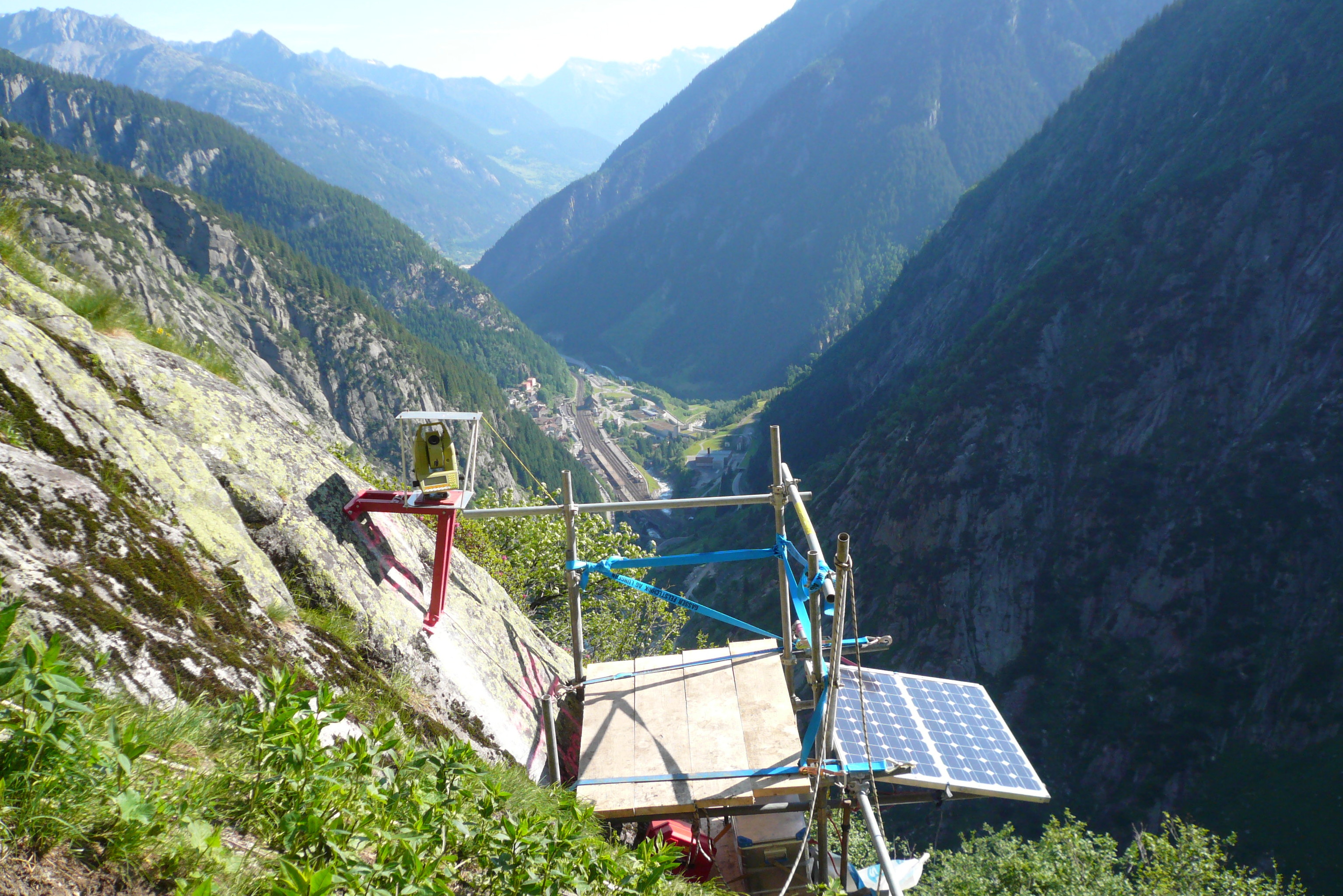 In collaboration with Acht Grad Ost AG, Terradata was able to install two autonomous total stations in the rockfall area within a very short time and monitor the rock sections at risk of falling using measurement technology. This enabled the workers involved in securing the rock face to be warned of even the slightest movements.