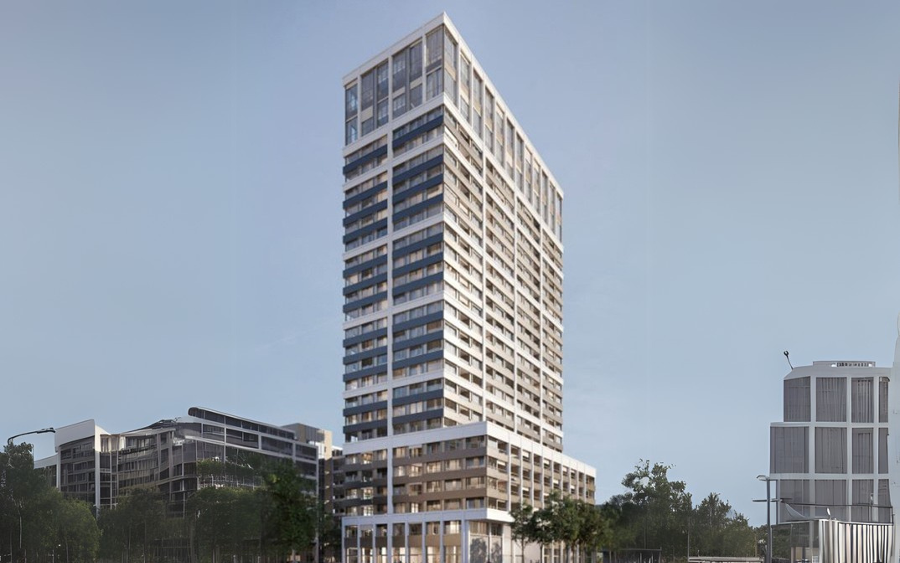 A striking 80-meter-high residential tower with 26 floors and 223 rental apartments ranging from 1.5 to 3.5 rooms is being built in Zurich-Leutschenbach.