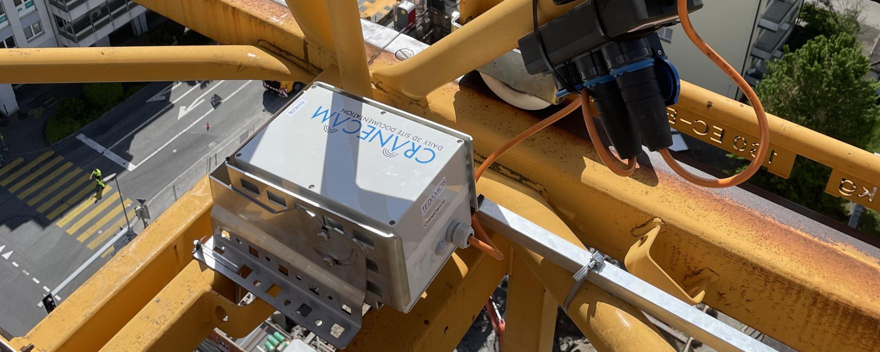 CraneCam scatta quotidianamente fotografie del cantiere grazie a telecamere montate sul braccio della gru di cantiere. Dalle foto, vengono calcolate in modo completamente automatico un'ortofoto ad alta risoluzione e una nuvola di punti 3D.