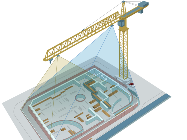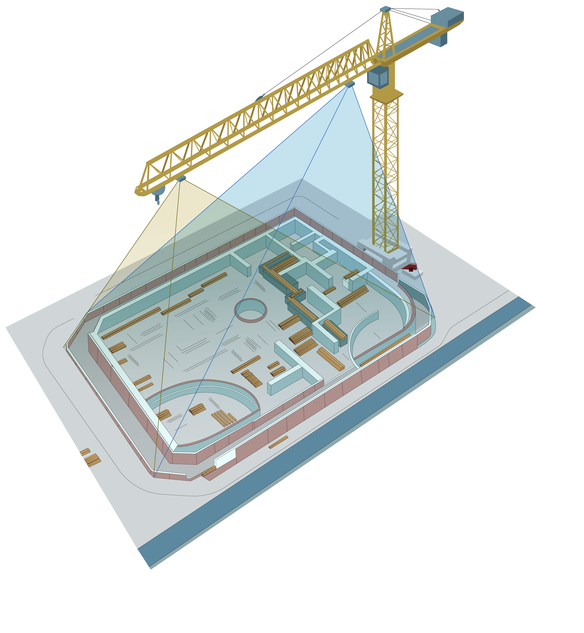 - Piani sovrapposti per un controllo rapido e pratico. L'API fornisce un'interfaccia per una facile integrazione dei risultati di CraneCam in altri ambienti, come il software di gestione del cantiere o il CAD.
